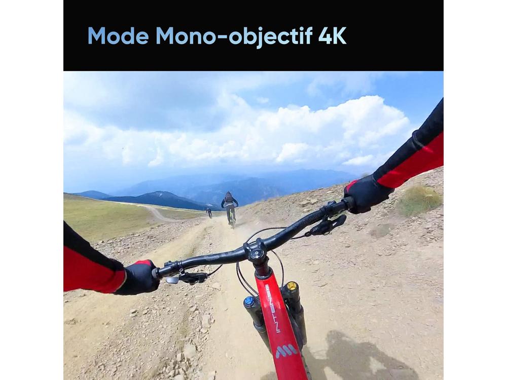 Sélectionnez l'un des objectifs pour filmer des séquences grand angle comme une caméra d'action à objectif unique. Obtenez une super résolution en 4K à 30ips ou un champ de vision extrêmement large de 170° avec MaxView en 2,7K. Vos prises de vue à la première personne n'ont jamais été aussi belles !