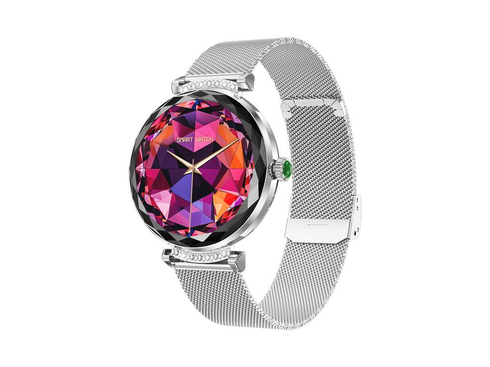 Découvrez une montre connectée pensée pour celles qui souhaitent allier technologie, élégance et féminité. Son design raffiné se distingue par un écran biseauté qui apporte une touche de sophistication et met en valeur chaque détail de son cadran. De délicats petits diamants disposés autour du cadran viennent sublimer l’ensemble et offrent un style chic et lumineux, parfait aussi bien pour le quotidien que pour les occasions spéciales.